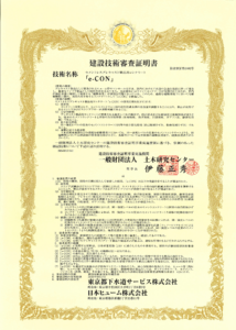 東京都下⽔道サービス株式会社(社⻑:神⼭守)と⽇本ヒューム株式会社(社⻑:増渕智之)が共同開発した「e -CON®」が、セメントをまったく使⽤しない、セメントレスプレキャストコンクリートとして、⽇本で初めて建設技術審査証明(⼀般財団法⼈ ⼟⽊研究センター)を取得しました。