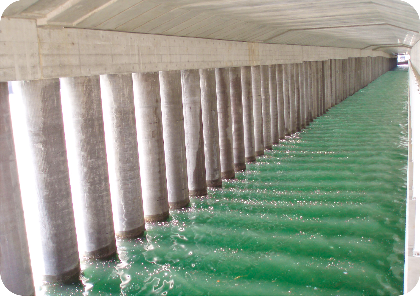河川・港湾事業では、耐塩害性が求められ、e-CONの持つ性能が、構造物の長寿命化に貢献します。